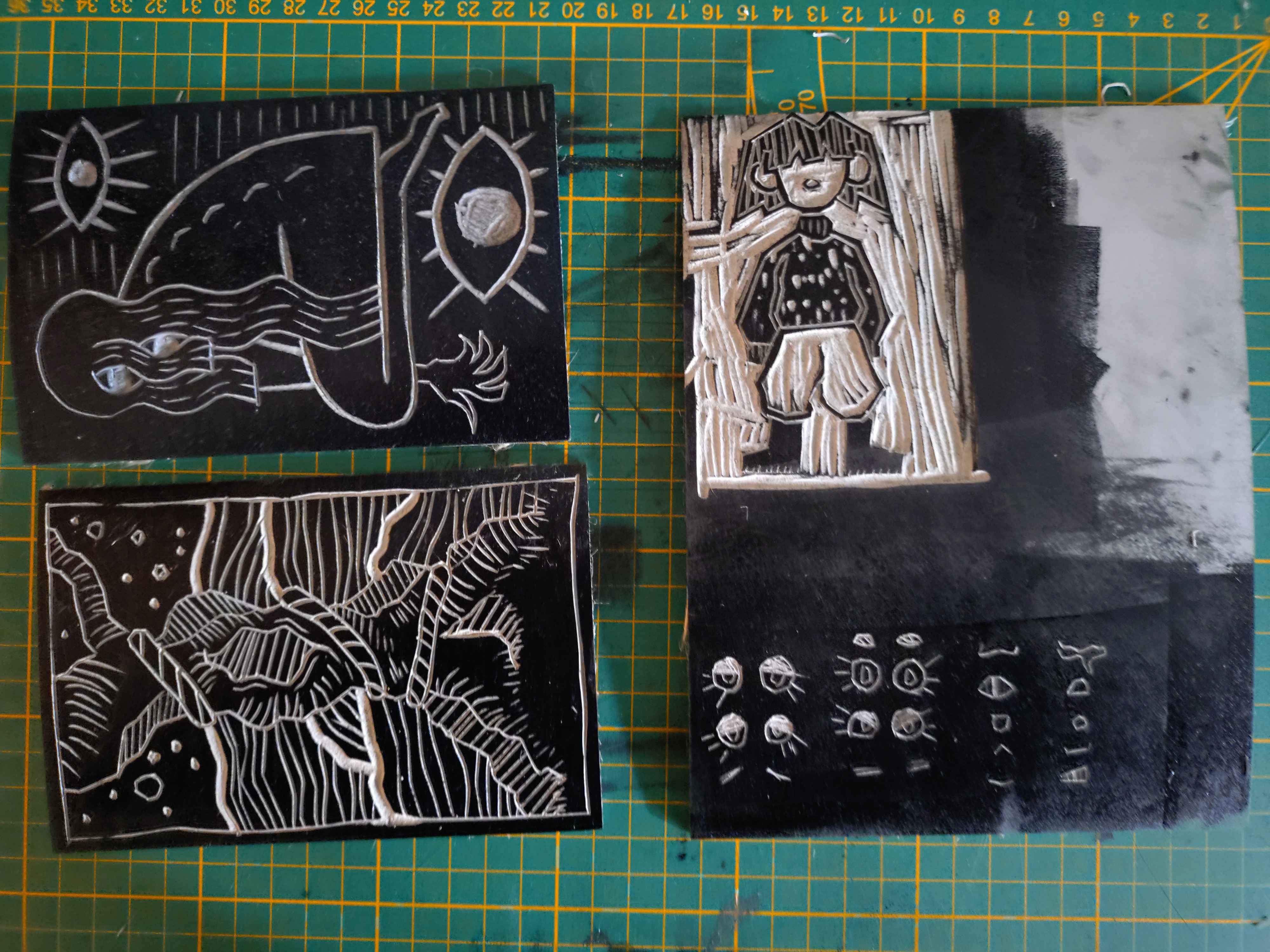 This time I wanted to experiment with alternatives styles of making visual assets, and while browsing the art supply store near my uni I kind of happened upon linoleum. I had been intrigued by stamps for a while already and I figured lino is kinda just big stamps!