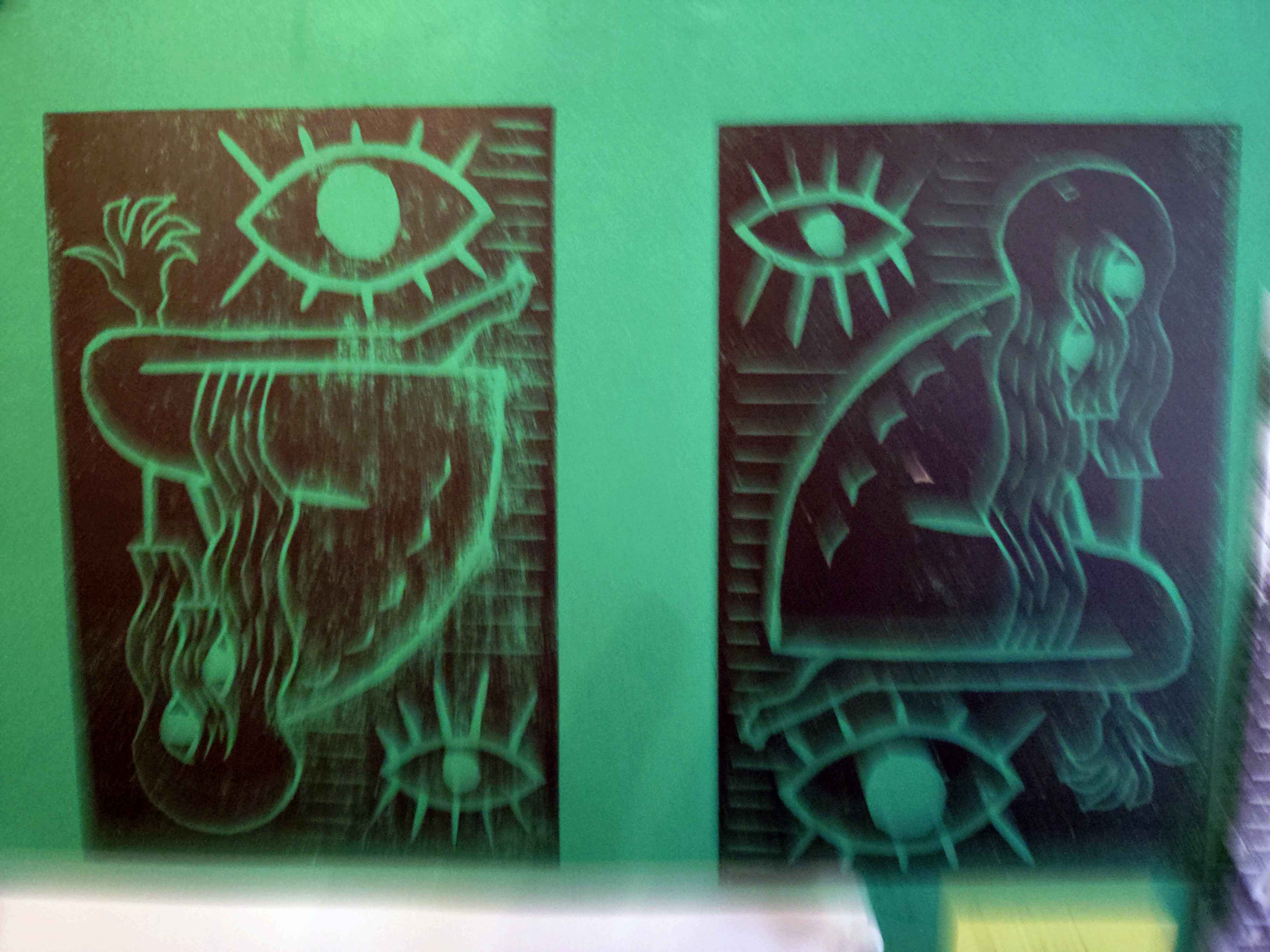 I found that what you do when gauging out the material is create a sort of negative of what you want. If you're making something line-art-heavy you'll have to get rid of a lot of material (or as I found out later you can just invert the scanned image of the print lol).